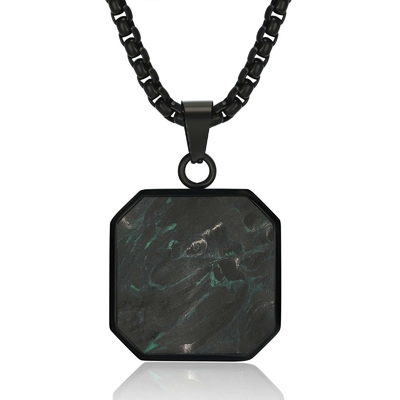 2025 New Arrival Waterproof Hypoallergenic Jewelry Square Bar Necklaces Forged Carton Fiber Geometric Square Pendant Necklace